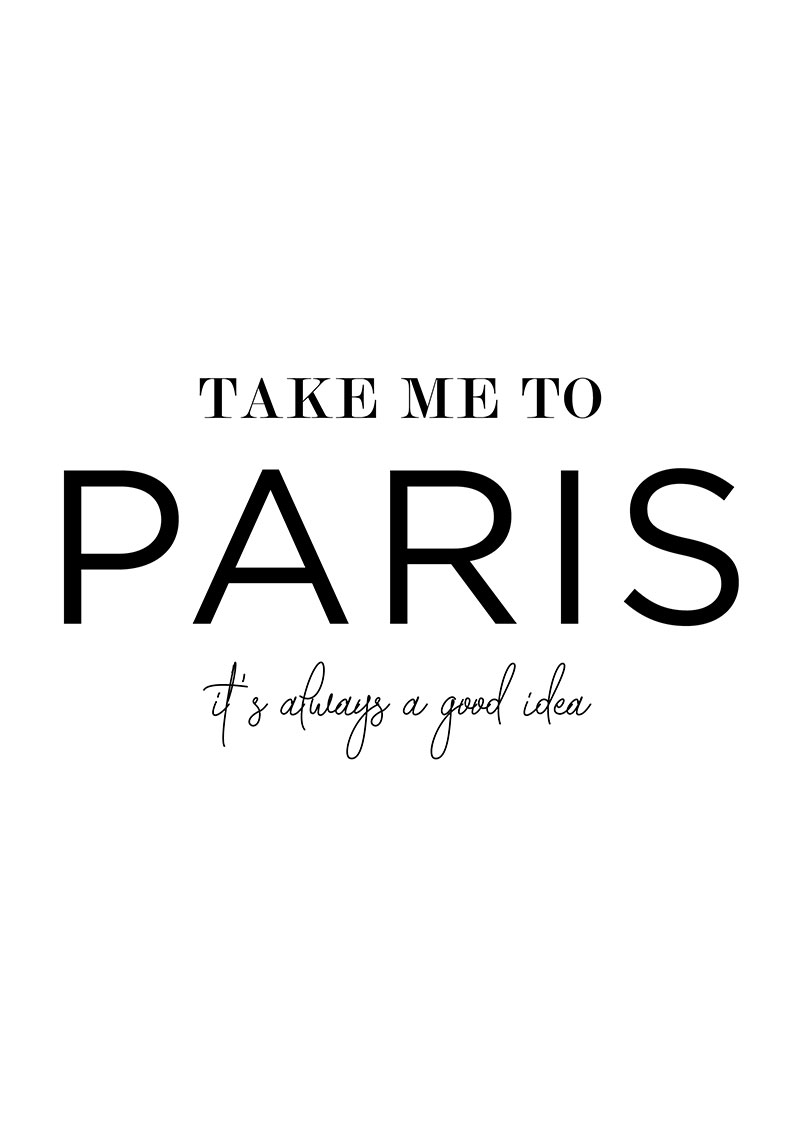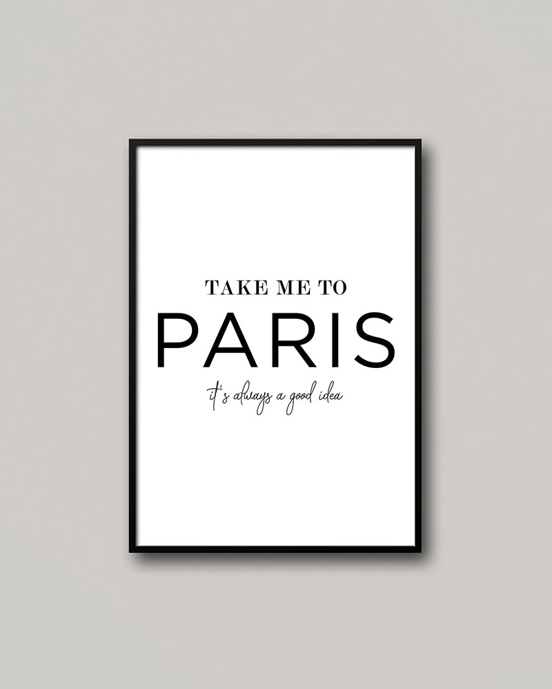 Take me to Paris poszter . Minimál stílusú falikáp, tipográfia dizájn.